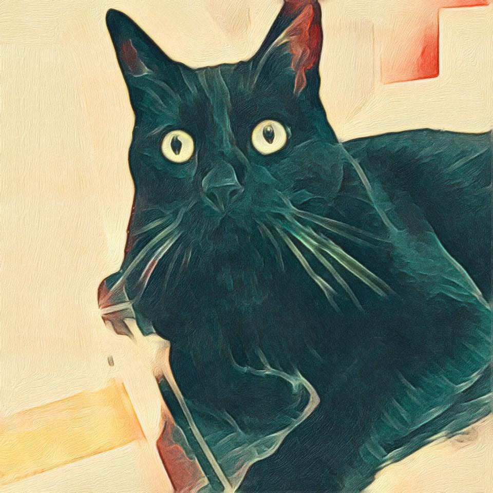 This is a photo I made of my cat, Mr. Bean, when he was still a youngster. He died during Covid quarantine unexpectedly - not sick, just made a horrible noise and dragged himself into the kitchen where I was cleaning - got down on the floor with him, he managed his way onto my lap gasping for breath - there was nothing in his mouth blocking his airway …